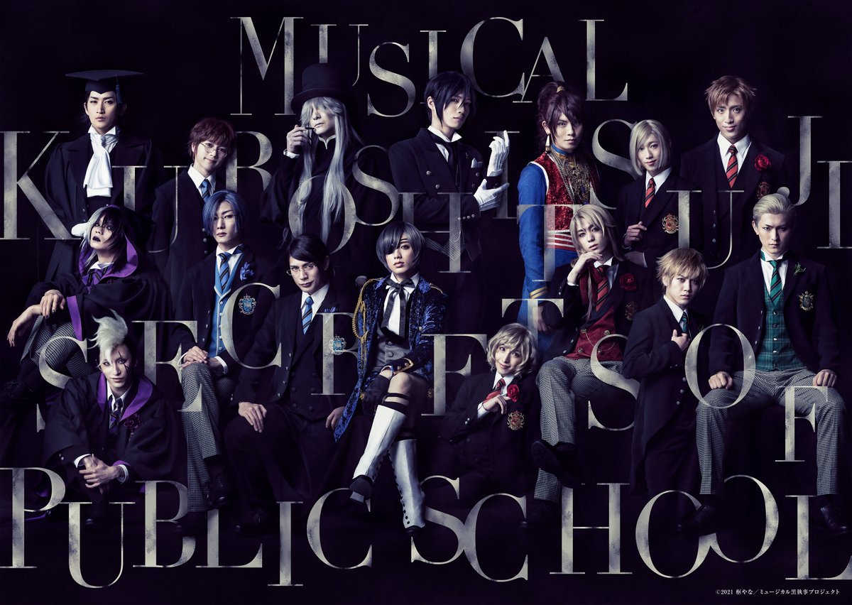 The main visual and all the remained individual photos of "Musical Kuroshitsuji - Kishuku gakko no himitsu" had been finally unveiled. The performances will be played from March 5 to 21, 2021 at the Galaxy Theatre in Tokyo, from March 25 to 28, 2021 at the Mielparque Osaka Hall in Osaka and from April 1 to 4, 2021 at the Umeda Arts Theater Drama City in Osaka.
